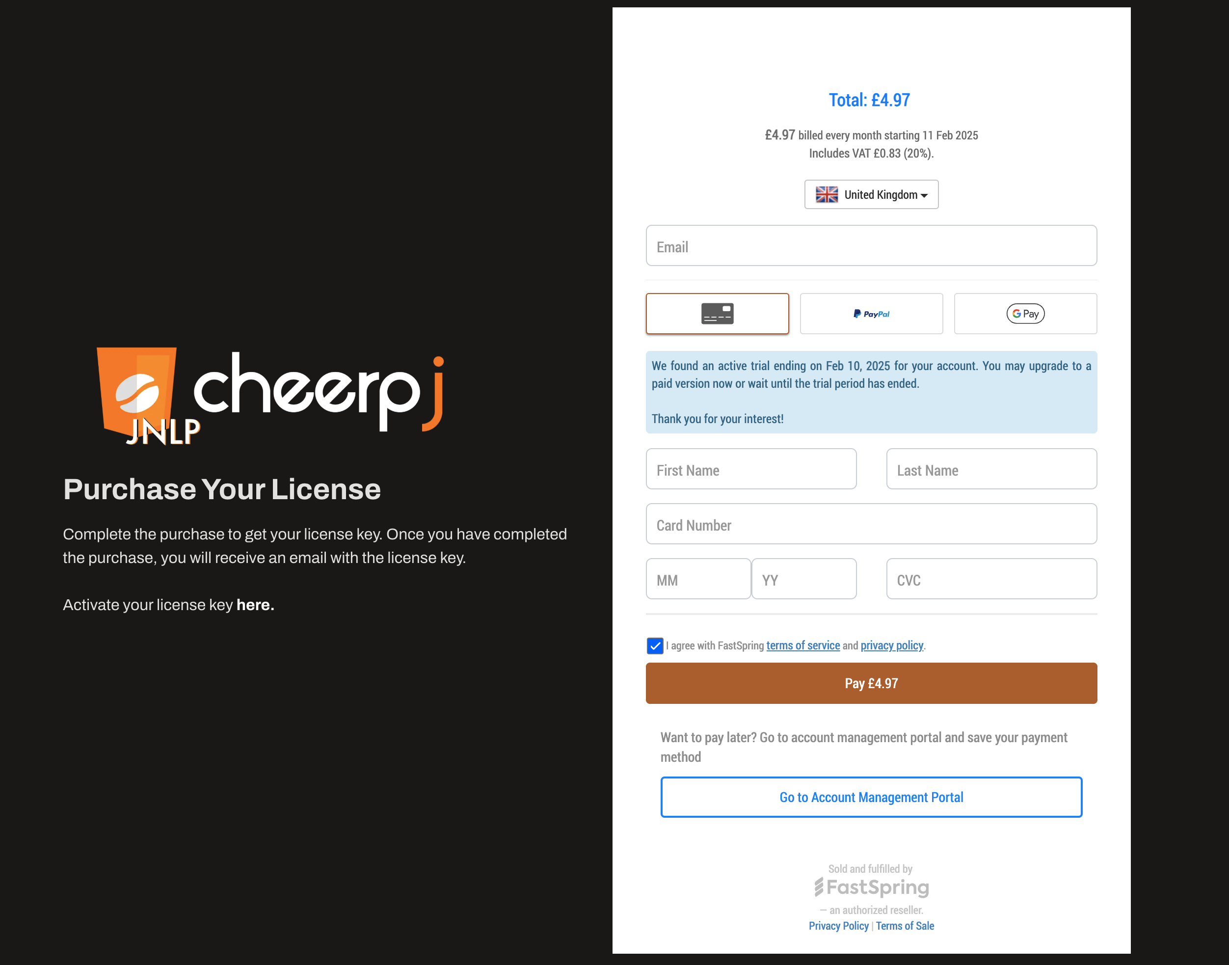 You will be redirected to the Leaning Technologies shop where you can request your license key.